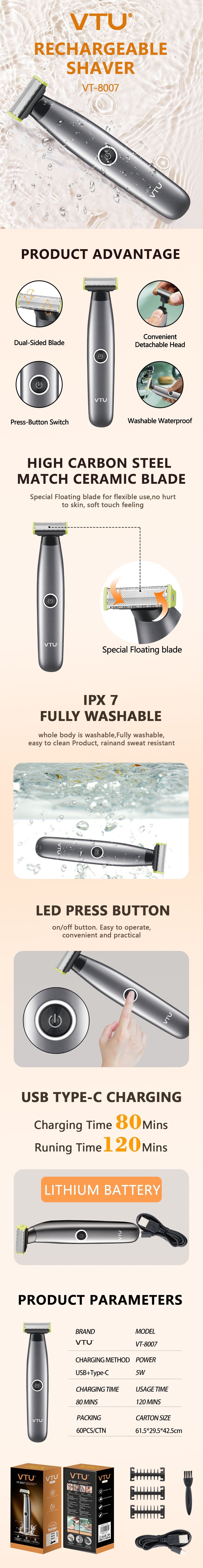 In case you are going to shop for a waterproof body groomer, an affordable men grooming trimmer, or a rechargeable body trimmer, then the VTU VT-8007 is indeed a good option as far as its specifications are concerned.